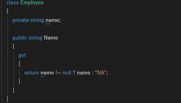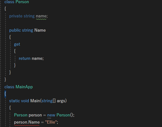 get 접근자는 형식의 값을 반환해야 한다. get 접근자의 실행은 필드의 값을 읽는 것과 마찬가지이다. 메서드를 통해 필드가 변경되고 싶지 않을 때 Set 메서드를 구현하지 않는 것처럼, 프로퍼티를 통해 필드가 변경되지 않기를 원할 때도 set 접근자를 구현하지 않으면 해당 프로퍼티는 쓰기 불가, 다른 말로 읽기 전용 프로퍼티가 되는 것이다. 또한 get 접근자는 return과 throw 문으로 끝나야 한다.