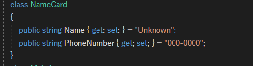 C# 7.0부터 자동 구현 프로퍼티를 선언과 동시에 초기화를 수행할 수 있다. 자동 구현 프로퍼티에 초기값이 필요할 때 생성자에 초기화 코드를 작성하는 수고를 덜 수 있다.