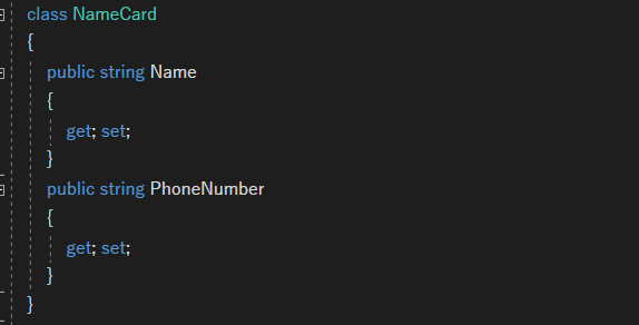 두 코드를 비교하면 수정 후의 코드가 더욱 간결해졌다. 필드를 선언할 필요도 없고, 그저 get 접근자와 set 접근자 뒤에 세미콜론만 붙여주면 된다.
