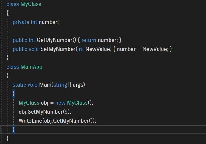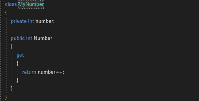 이제 MyClass의 객체는 '=' 할당 연산자를 통해 number 필드에 데이터를 저장하고 또 반대로 데이터를 읽어 올 수도 있다.