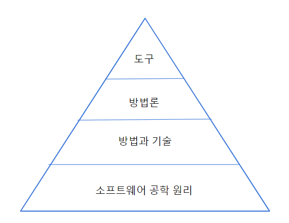 소프트웨어 프로세스와 제품의 바람직한 측면들을 기술하는 추상적 설명. 추상화, 분할 정복, 계층적 조직의 원리 등이 해당한다.