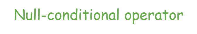 널 조건부 연산자 (?.) - 객체의 멤버에 접근하기 전에 해당 객체가 null인지를 검사하여 그 결과가 참(즉, 객체가 null) 이면 그 결과로 null을 반환하고, 그렇지 않은 경우에는 . 뒤에 지정된 멤버를 반환한다. 이렇게 하면 일일이 if문을 써서 null을 체크할 필요가 없다! 만약에 인덱서, 배열 요소등을 접근할 경우에는 ?[] 로 표현하면 된다.