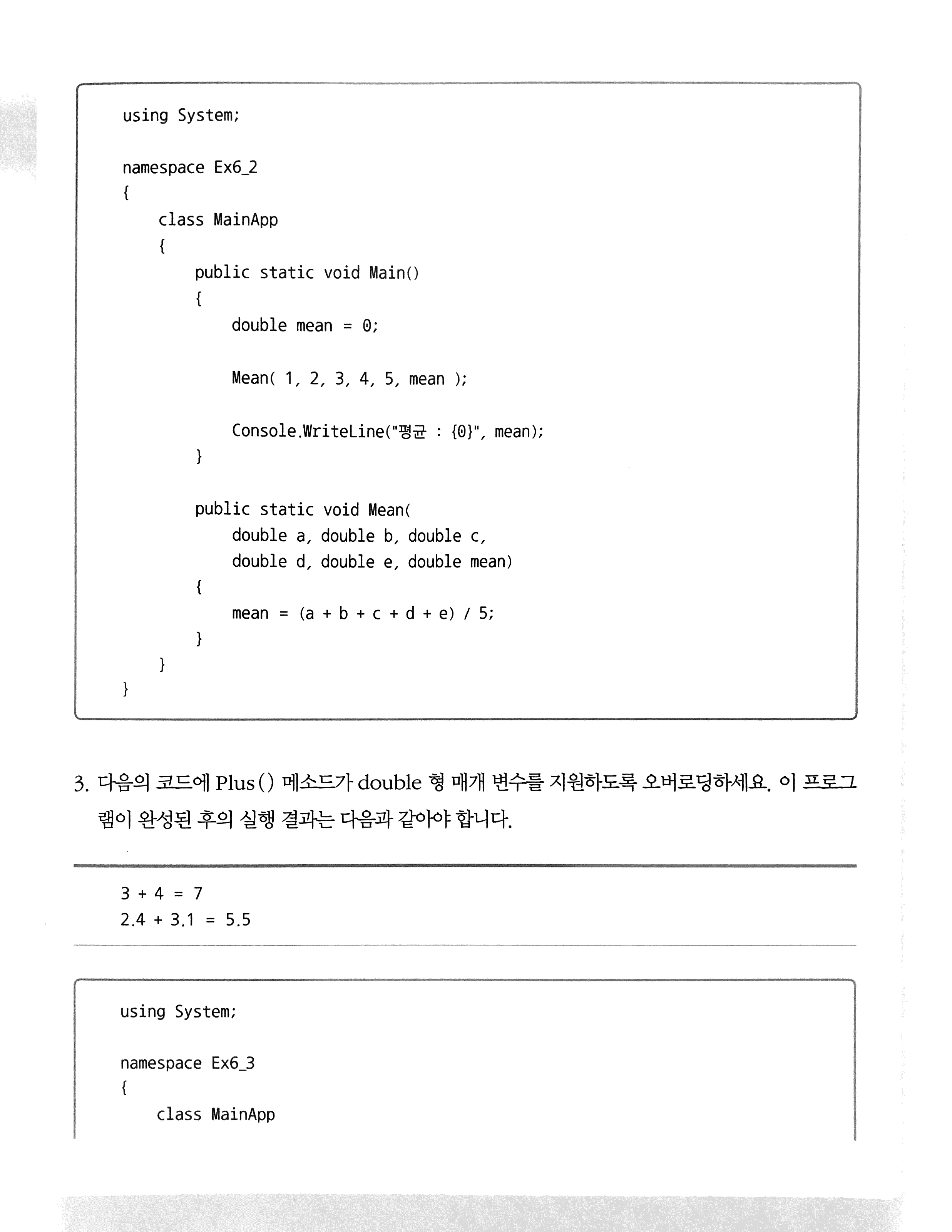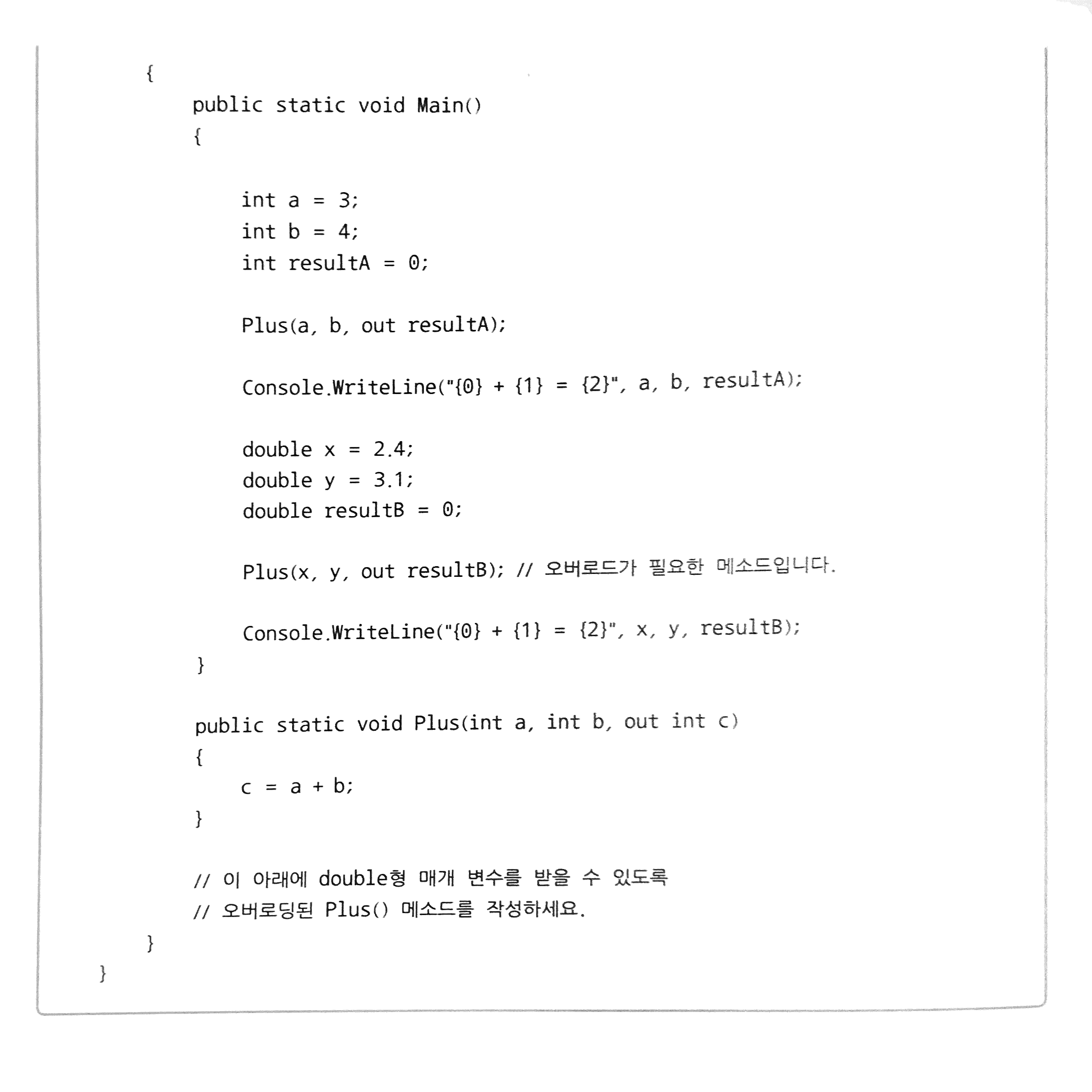 Plus(x, y, out resultB); // 오버로드가 필요한 메소드