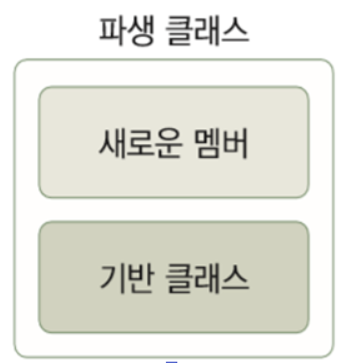 또한 파생 클래스는 기반 클래스로부터 물려받은 멤버들 외에 고유의 메서드와 멤버를 추가해서 사용하게 된다. 이것은 파생 클래스가 기반 클래스 위에 새로운 멤버를 "얹어" 만든 것이기 때문이다.