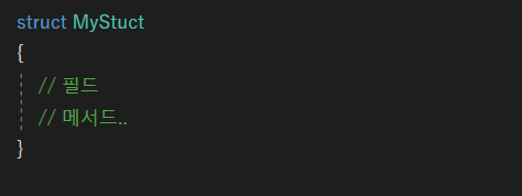 구조체 - 구조체는 데이터를 담기 위한 자료 구조이다. 클래스와 상당 부분 비슷한 데이터 형식인데, 간단한 데이터를 구조화해서 다룰 경우에는 클래스보다 구조체가 좀 더 적합하다. 또한 구조체는 클래스와 마찬가지로 메서드, 프로퍼티 등 거의 비슷한 구조를 가지고 있지만 상속은 할 수 없으며 값 형식이고 인터페이스는 구현 가능하다.