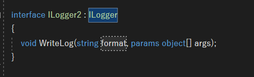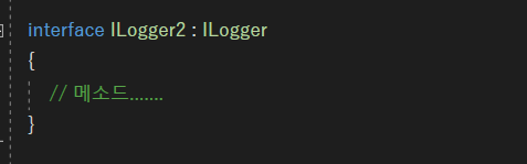 ILogger2 인터페이스는 ILogger에 선언되어 있는 void WriteLog(string message)와 void WriteLog(string format, params object [] args) 메서드 두 개를 갖게 된다.