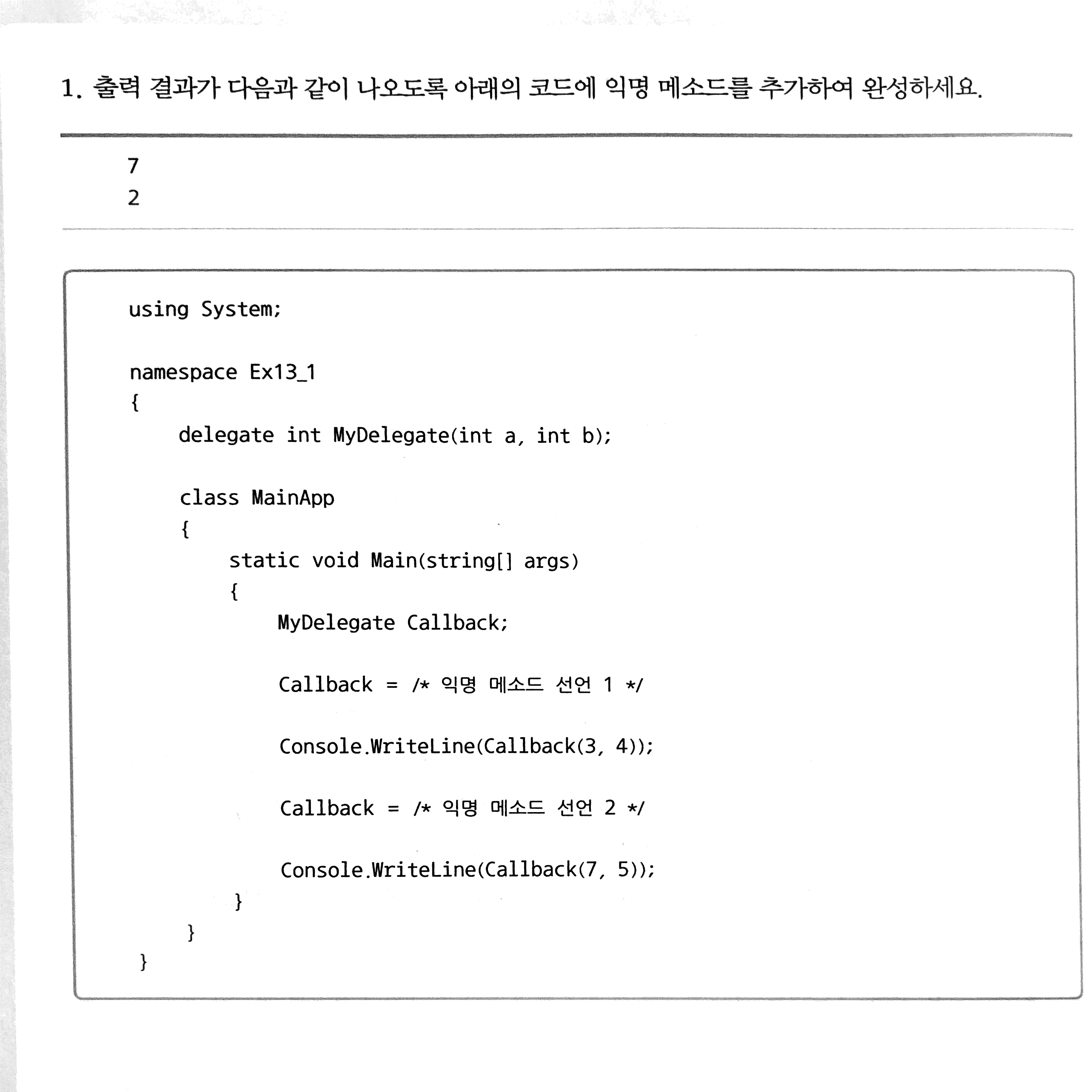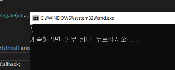 WriteLine(Callback(7, 5));