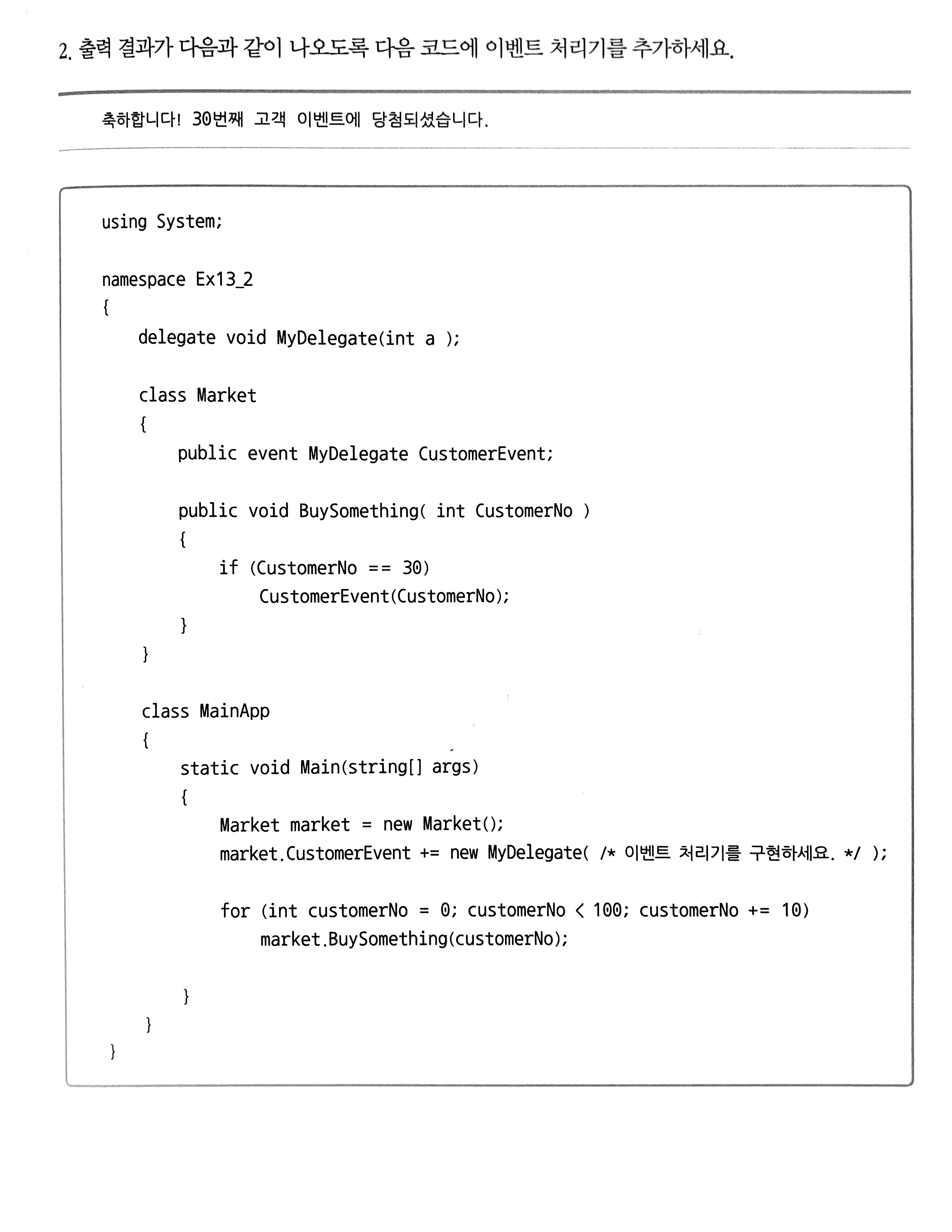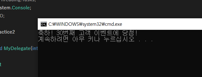 WriteLine("축하! {0}번째 고객 이벤트에 당첨!", a);